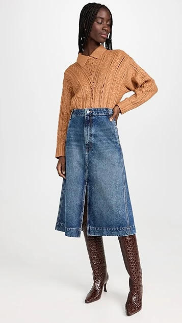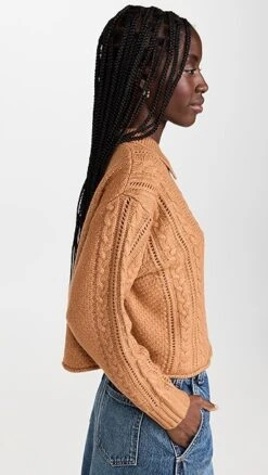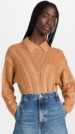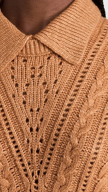 An autumnal-hued essential with eclectic style. This comfy and unique 525 sweater sports a mix of cable patterns, plus a fold-over collar for a vintage-inspired finishing touch. This versatile piece will pair nicely with all types of jeans and trousers.