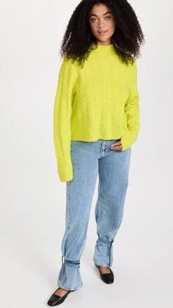 A stand-out rendition of a winter staple, this 525 Rhia sweater combines traditional cable patterning with vivid color. Wear it with understated denim to give it the spotlight it deserves.