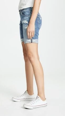 Shredded and faded to feel like an authentic summer favorite, these AG shorts have a longer length for an easy-going look.
