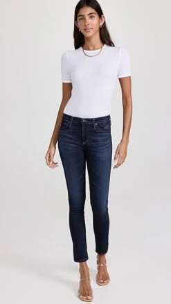 An ankle jean that’s perfect for everyday wear. These AG jeans have a cool and casual look with a faded wash and inky color.