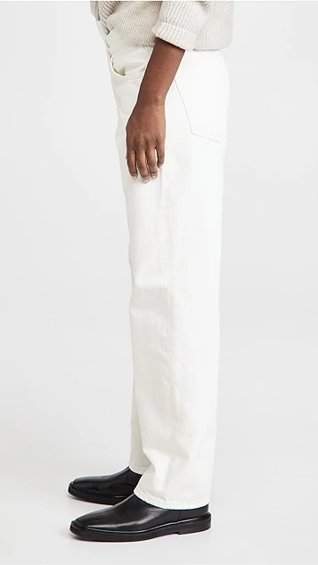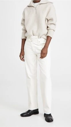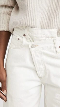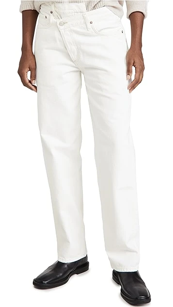Refresh your closet with these AGOLDE white jeans, featuring a crossover waist and contrast stitching. Tuck in your favorite band tee and slide into sandals for a cool yet easy look that feels true to the brand.