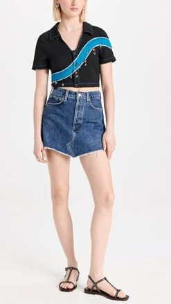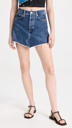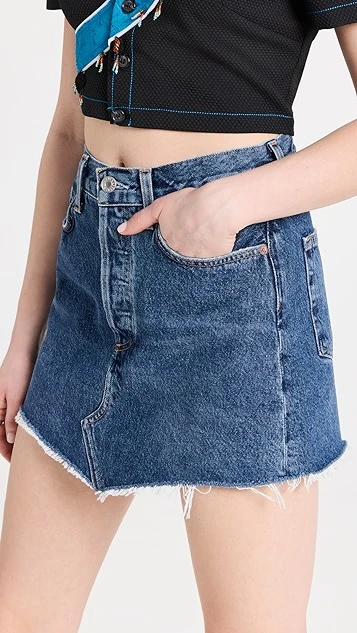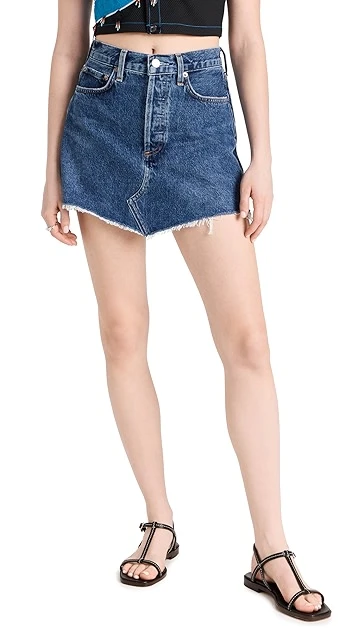 An easy alternative to your usual shorts, this AGOLDE miniskirt is crafted from faded denim, and is finished with a frayed, angular hem. All types of tops, from tees to crisp blouses, will work nicely with this piece.