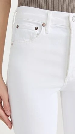 The everyday favorite fit of the brand’s signature Riley straight-leg crops comes updated in a warm weather-friendly wash, and features subtle distressed touches.