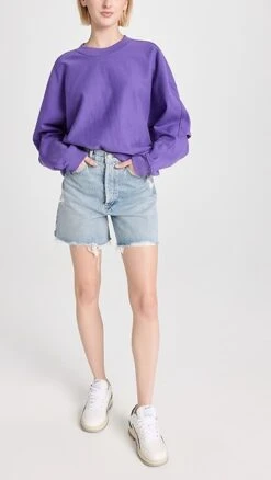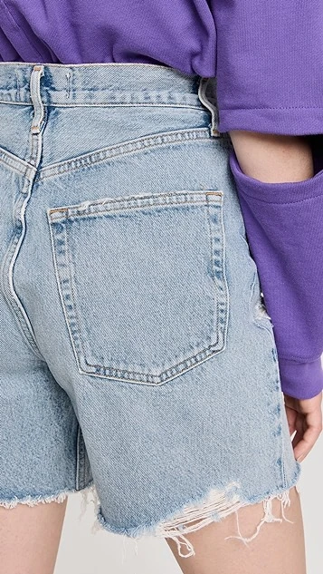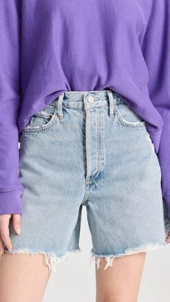 Featuring a faded blue wash, frayed cuffs, and longer length than your usual cutoffs, these AGOLDE denim shorts are a classic weekend-ready pair that you’ll want to wear all summer long.