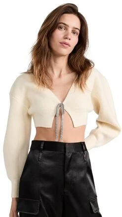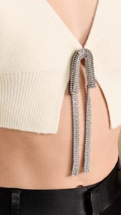 - Hook-and-eye closure with decorative crystal embellished bow at front