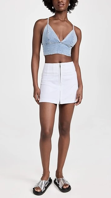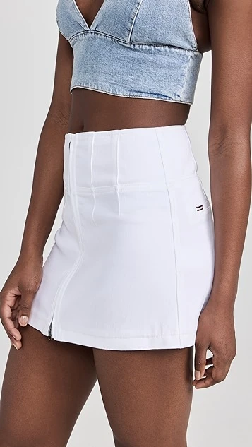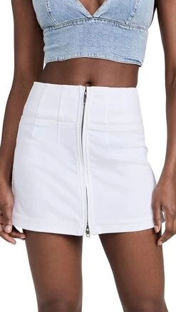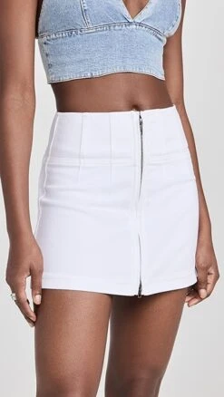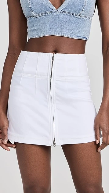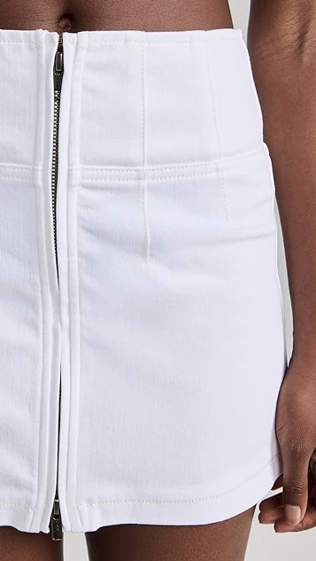 A figure-skimming alice + olivia miniskirt in super-stretch white denim. Crisp darts lend an extra touch of emphasis to the waist. Keep your look casual with a graphic tee, or take things in a more polished direction with a silk cami.