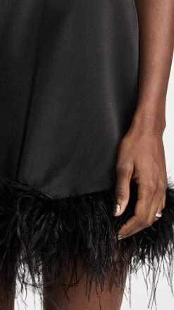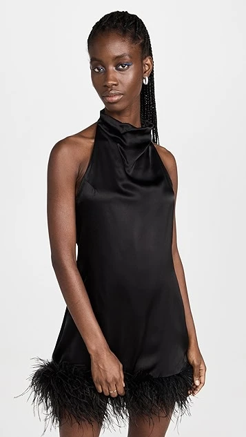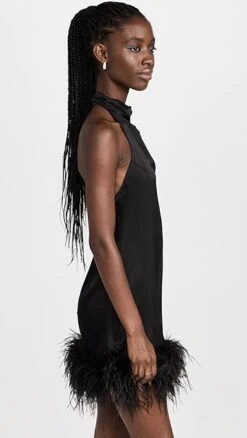 Make an elegant impression in this Amanda Uprichard black halter dress, which is crafted from shimmery, pure-silk fabric and accented with voluminous ostrich feathers at the hem.