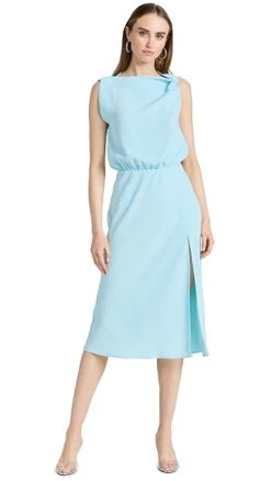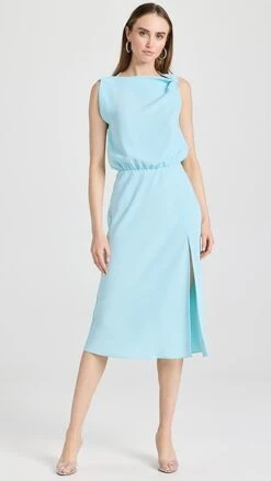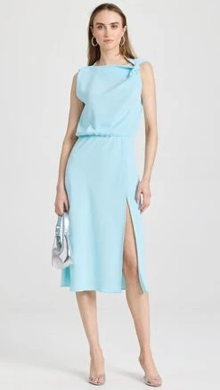 A shoulder twist and a side slit lend a subtle touch of asymmetry to this pink Amanda Uprichard dress. Complete your special-occasion look with strappy heels and a minaudiere.