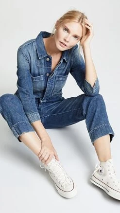 AMO brings their denim expertise to this utilitarian jumpsuit. This one-and-done silhouette has a slouchy, comfortable fit, and is crafted from faded denim.