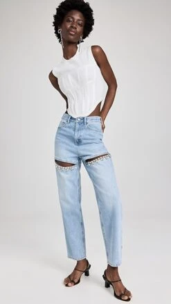 - Crafted in all-cotton rigid denim to retain shape and fit