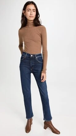 A sophisticated basic in a soft merino wool blend, this AYR mock neck top features a sleek, figure-hugging fit and go-with-anything color.