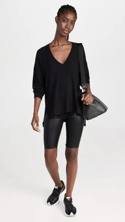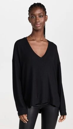 Enjoy your downtime in this lightweight Beyond Yoga pullover. This long-sleeve top features a classic V neckline, and gains an extra-slouchy look from dropped shoulder seams and an asymmetrical hem. Wear it with slim jeans, or opt for a pair of leggings from the label’s assortment.