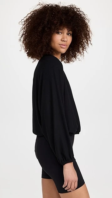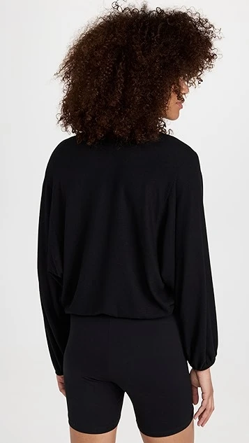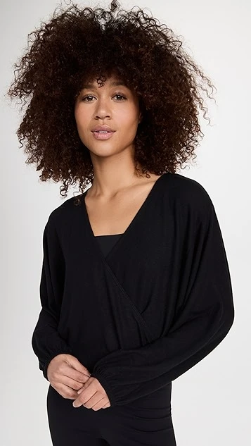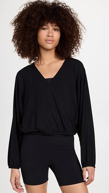 Put the finishing touches on your off-duty look with this Beyond Yoga Wrapped Up pullover, which is designed with a surplice neckline and an elastic hem that creates a blouson silhouette. We particularly like this piece when it’s paired with bike shorts from the label’s collection.