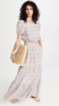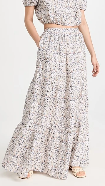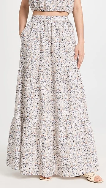 Comfortable volume and summery style is the story with this CAMI NYC maxi skirt, which is crafted from a lightweight blend of cotton and linen and accented with vintage-inspired patterning.