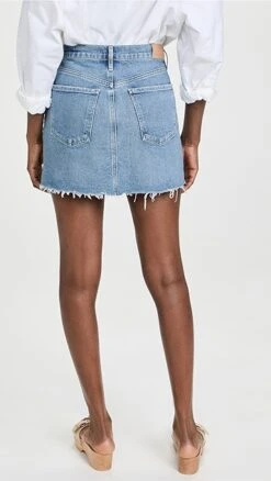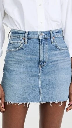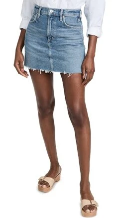 Citizens of Humanity presents a classic denim skirt with a relaxed mini silhouette. This silhouette features a heavily faded wash and raw-cut hem that makes it work really well with a pair of off-duty sneakers.