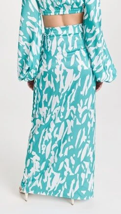 - Wrap silhouette with tie at waist