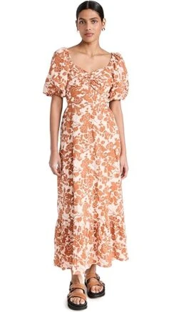 A monochrome floral print covers this elegant yet everyday-friendly English Factory dress. A sweetheart neckline and puff sleeves accentuate the romantic feel of the piece.