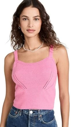 Add some softness to your layered looks with this sweater tank from ENGLISH FACTORY, which features pretty pointelle-knit detailing and a cropped hem that makes it great for pairing with high-waisted denim.