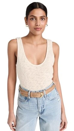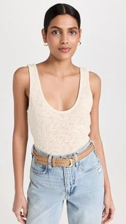 As soft as your favorite sweater but made for the summer months, this Enza Costa tank is crafted from easy-breathing burnout fabric and designed with a deep scoop neckline.