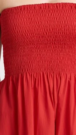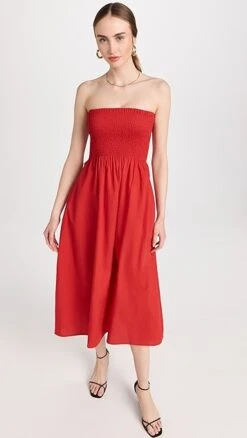 Splitting the difference between occasion-worthy and everyday-friendly style, this FAITHFULL THE BRAND strapless dress draws the eye with a deep red hue and fit-and-flare proportions. Complete your look with heeled sandals, and accessorize with gold-tone jewelry.