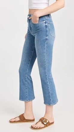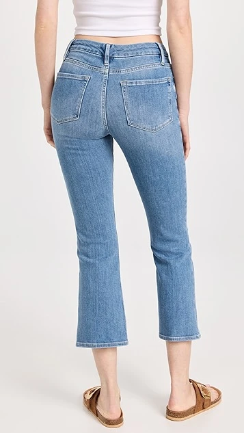 A signature pair of crops that you will want to wear with all sorts of looks. These FRAME jeans feature a cropped boot cut leg and faded denim for a casual look.
