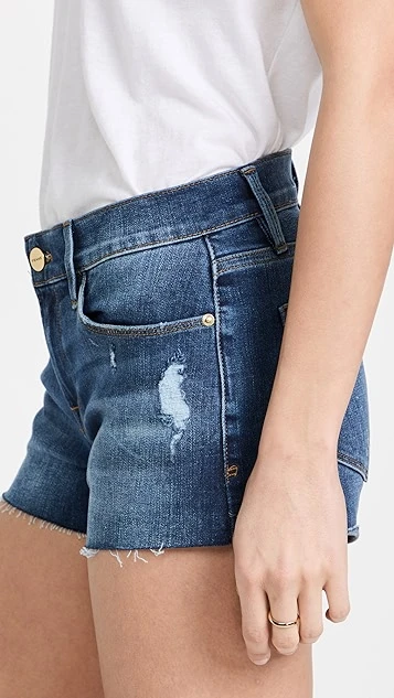 Crafted in faded denim and finished with a distressed hem, these classic FRAME cutoff shorts will be the pair you live in all summer long.