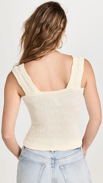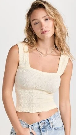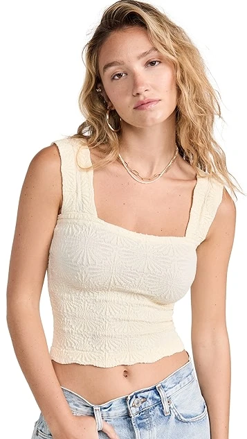 This figure-skimming Free People crop top gains a signature feel from texture-rich patterning. A square neckline and broad shoulder straps bring an extra touch of romance to the silhouette. Just go with the high-rise jeans of your choice to complete your outfit.