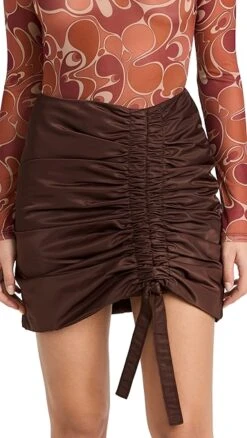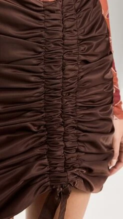 - Ruched drawstring at front with tie hem