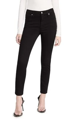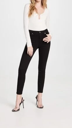 A cropped version of the brand’s signature Good Legs jeans. These Good American skinny jeans are a must-have style that are crafted with the same amazing recovery and retention that the full-length pair is known for. Pair yours back to easy slides and a white button down for a refreshed look.