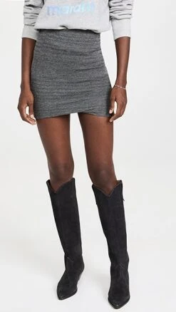This Isabel Marant Etoile miniskirt is crafted from slinky, dark grey fabric. A more polished alternative to cutoffs, this piece will still pair well with casual basics, like one of the label’s logo sweatshirts.