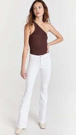 Flared cuffs add a vintage-inspired finish to these bright-white L’AGENCE jeans, which are imbued with plenty of stretch that guarantees all-day comfort.