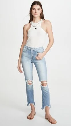 These L’AGENCE jeans are distressed to perfection with a frayed hem and faded wash that enhances the worn-in look. With a little stretch, these jeans will sit right above your waist, contouring to fit you perfectly.