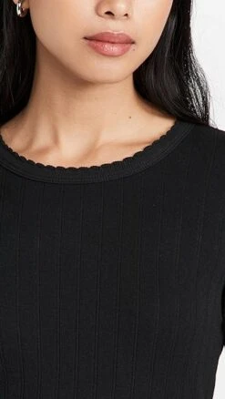 A pair of subtle pointelle patterns elevates this slim-fit Leset top, while scallops at the neckline and shoulder straps add to the charm of the piece. Wear yours with the jeans or cutoffs of your choice.
