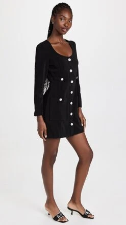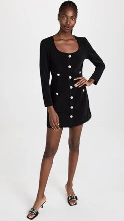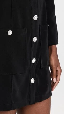 The perfect midpoint between polished, utilitarian, and casual, this black Line & Dot Alexis mini dress features a scoop neckline, patch front pockets, and faux-pearl contrast buttons. To complete your outfit, all you’ll need are kitten heels and crystalline earrings.