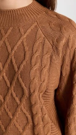 A must-have addition to any knitwear collection, this Line & Dot sweater features a goes-with-anything camel color and texture-rich cable patterning.