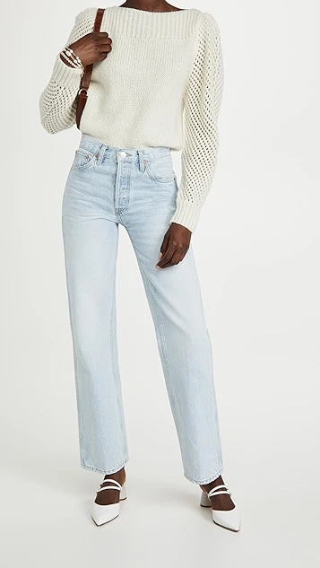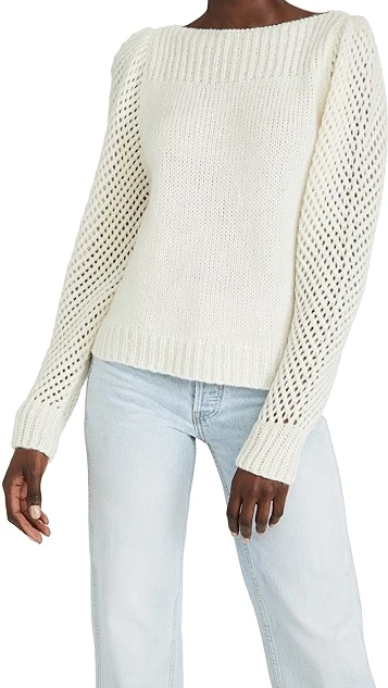 Step up your sweater game with this fresh silhouette from LoveShackFancy, which stands out by including open-knit sleeves and a boat neckline.
