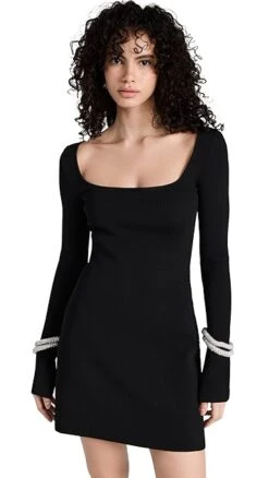 - Long sleeves with crystal embellished bracelet cuffs