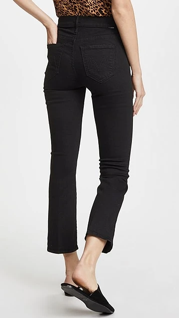 Take it easy in these MOTHER crop jeans, a jet-black pair in soft stretch denim. Add a patterned blouse and sandals for a no-fuss off-duty look.