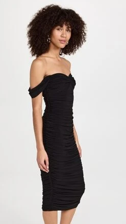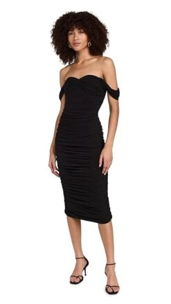 - Off-shoulder sweetheart neckline with draped shoulder straps
