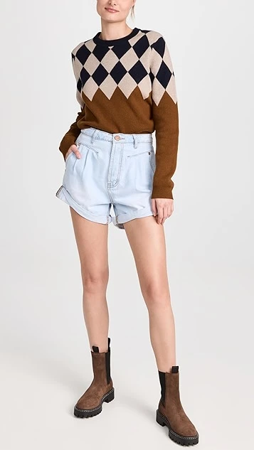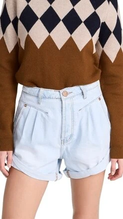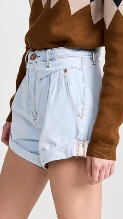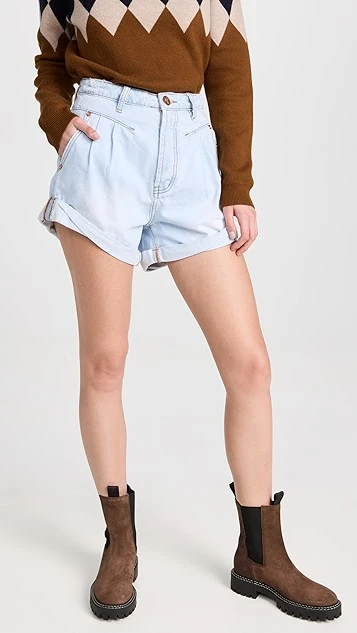 Slouchy, cool, and instantly distinct, these high-rise One Teaspoon Casanova denim shorts feature fixed cuffs, contrast stitching, and a unique arrangement of pleats at the waist.