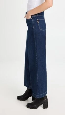 A more polished take on wide-leg style, fresh from PAIGE. These Harper jeans feature a dark-blue wash with just a touch of fading, plus a crop silhouette that works perfectly with your favorite leather boots. To complete your outfit, add a blazer and a simple tee or pullover.