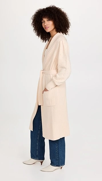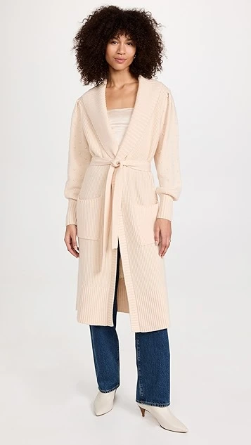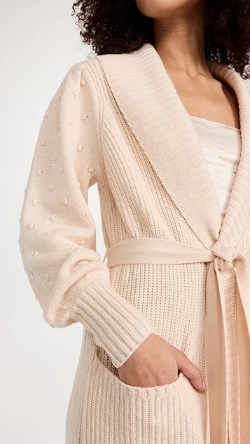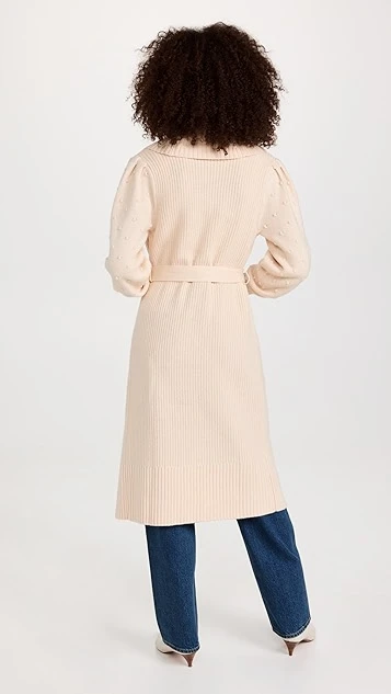 - Long puff sleeves with ribbed cuffs and raised knit polka-dots