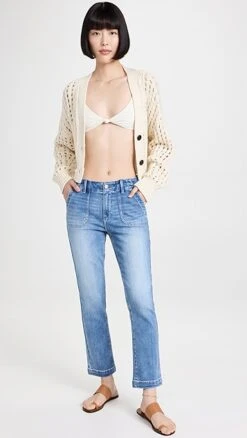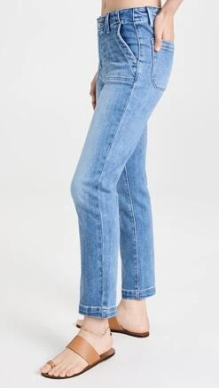 These PAIGE jeans feature a classic straight-leg cut and heavy fading, and feel just a little bit different from the usual thanks to pork chop pockets.