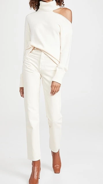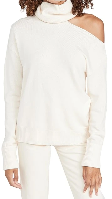 Cozy meets modern on this PAIGE sweater, which takes a classic turtleneck silhouette and updates it with a shoulder-baring design that’s both a little unexpected and very chic.