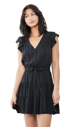 A must-have mini to round out your warm-weather wardrobe, this PAIGE dress is a charming as it versatile with an easy, swingy silhouette finished with fluttery ruffles. Simple sandals and sporty sneakers both work well with this simple style.