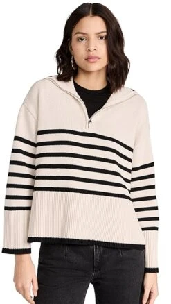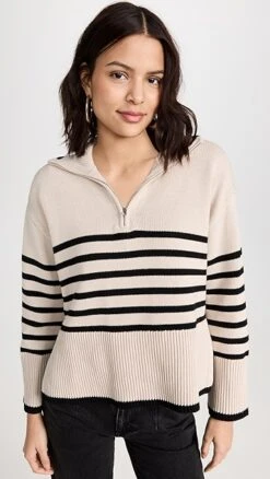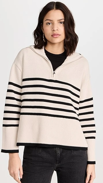A unique Pistola Denim sweater in pure cotton, featuring a relaxed hem, a unique arrangement of two-tone stripes, and a classic half-zip neckline. Wear yours with a pair of jeans from the label’s assortment.