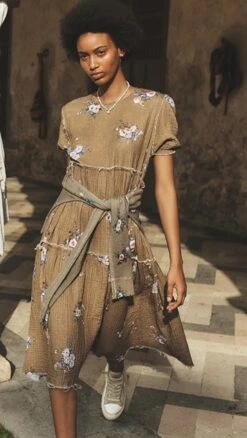 Pretty and edgy in equal measure, this R13 dress is crafted from lightweight fabric, and juxtaposes a muted floral print with fraying at the edges and raised seams. We especially like the looks of this piece when it’s paired with classic combat boots.
