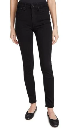 Rag & Bone/JEAN skinny jeans make creating laid-back looks a breeze. The high-waisted pair feels particularly sleek thanks to unblemished black denim.