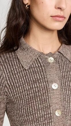 - Collared neckline and button placket