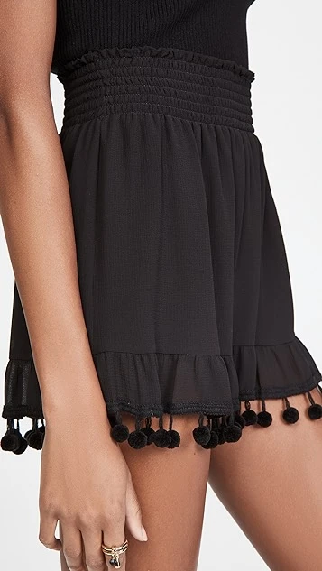 Short and sweet, this Ramy Brook skirt is cut from breezy crepe in a beach-ready mini silhouette that features playful pom-pom trim. Wear it as a coverup, or pair it with a crop top and sandals for a sunny-day brunch.